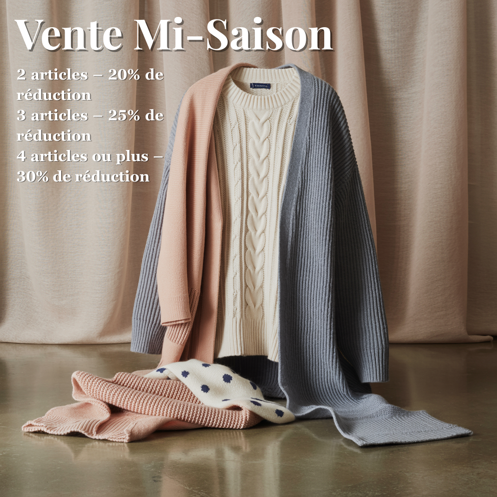 Inspirée par l’équilibre entre légèreté estivale et confort de saison, notre collection Mi-Saison associe style et praticité dans chaque détail. Des lignes épurées, des coupes confortables et une touche d’originalité pensées pour vous accompagner avec élégance, du matin au soir.